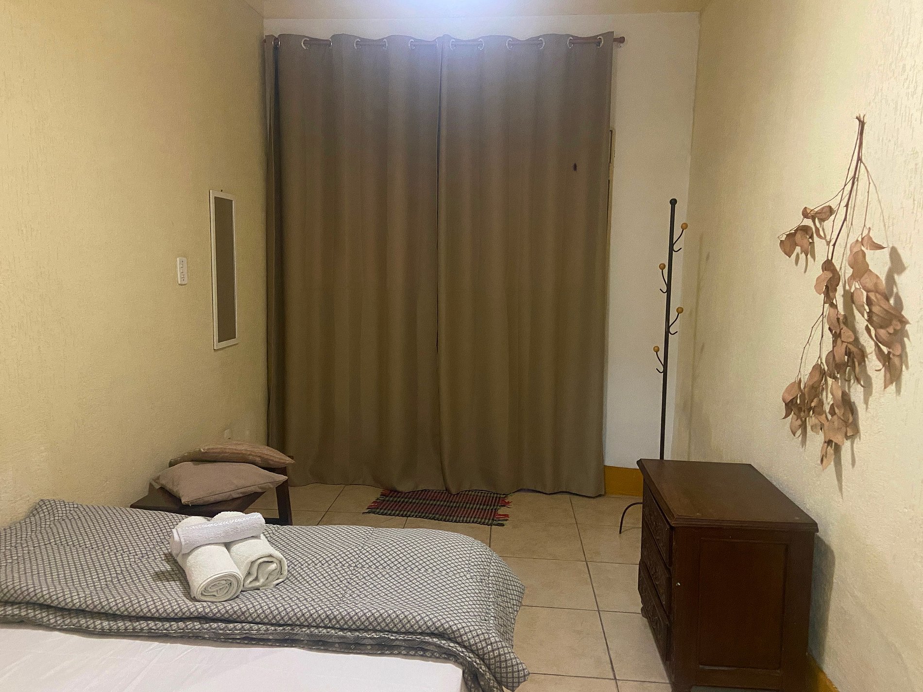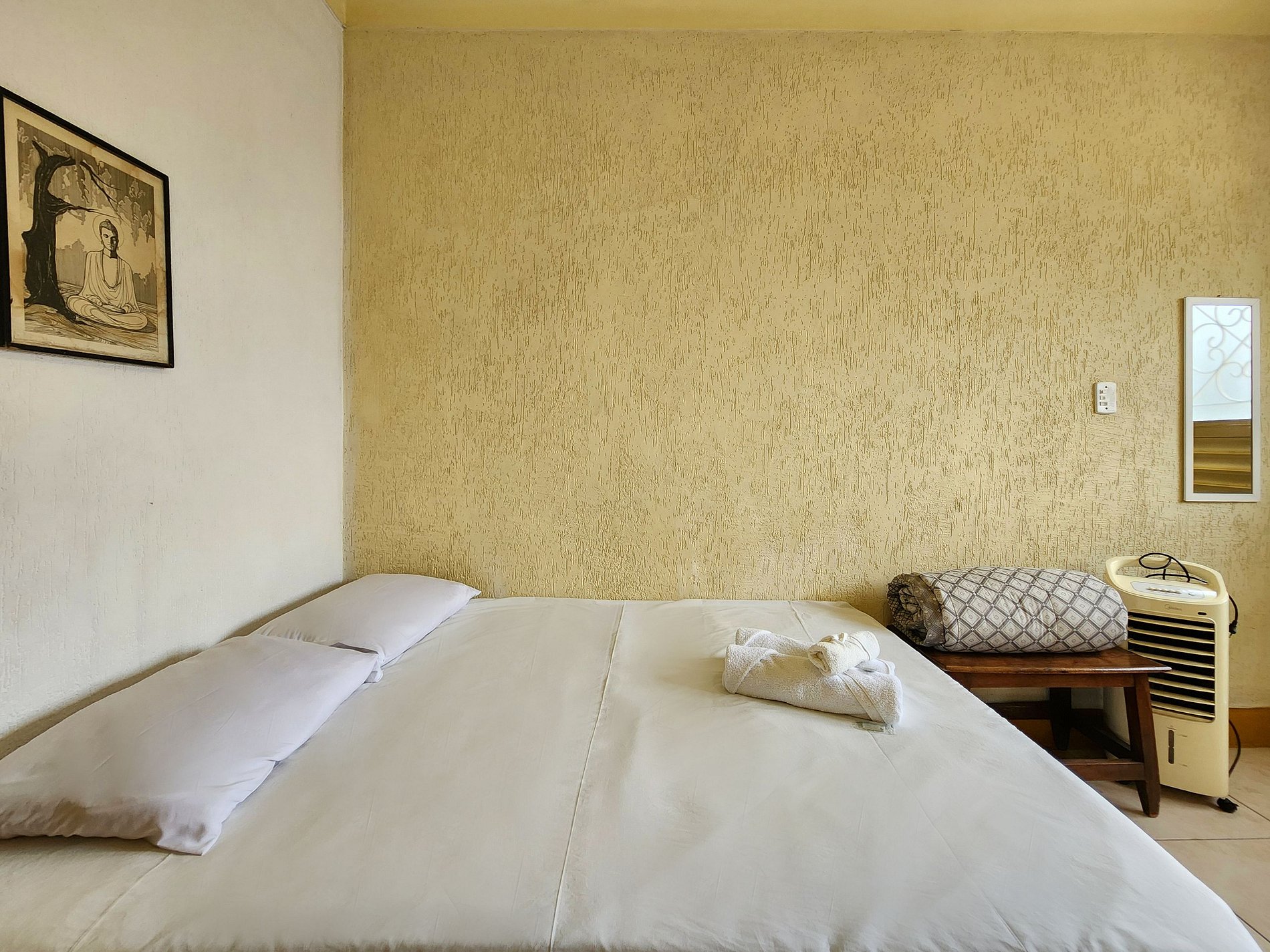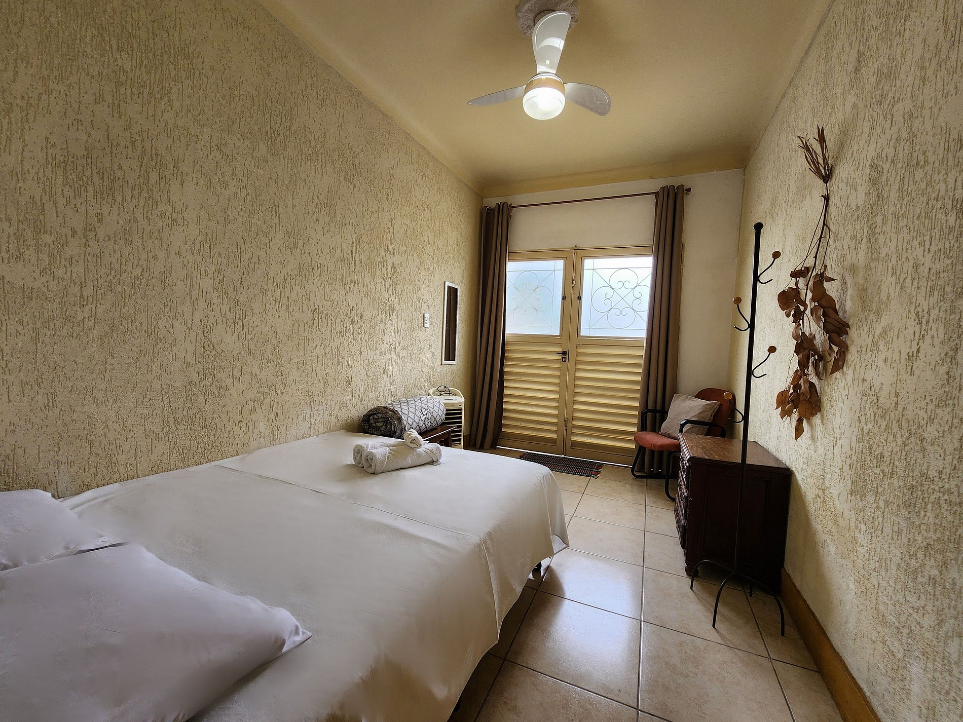 Espaço simples, porém bem acolhedor e cuidadosamente preparado para receber os hóspedes com carinho e atenção aos detalhes. Dispomos de uma cama de casal, lençóis, travesseiros e roupas de cama e edredons de qualidade, além de toalhas de banho e rosto para sua estadia. O ambiente conta ainda com um pequeno armário, criado-mudo, Wi-Fi, ventilador e mesa de jantar/trabalho.